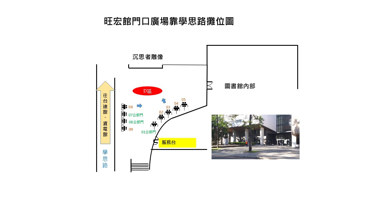 為辦理2025年秋季徵才博覽會,9/22(一)⾄ 9/24(三)於旺宏館⼀樓及周邊將進⾏活動場佈施⼯及活動,造成不便之處,敬請見諒。