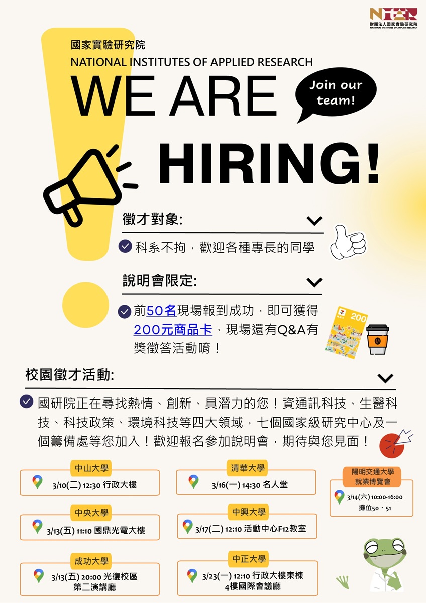 加入國研院的第一步|2026校園徵才說明會熱烈報名中!